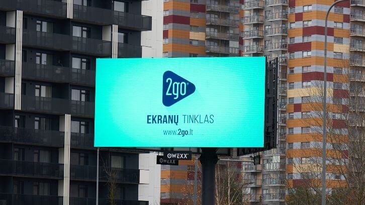 Konkurencingoje rinkoje laimi tie, kurie yra matomi – matomi ten, kur laiką leidžia potencialūs klientai. „2go“ lauko ekranų tinklas – tai visose trijose Baltijos šalyse veikianti reklamos platforma, siūlanti lauko ekranus Lietuvos, Latvijos ir Estijos miestuose. Laikas būti matomam – „2go“ siūlomi lauko ekranai suteikia galimybę išsiskirti, transliuoti ryškią reklamos žinutę ir pasiekti didelę auditoriją.